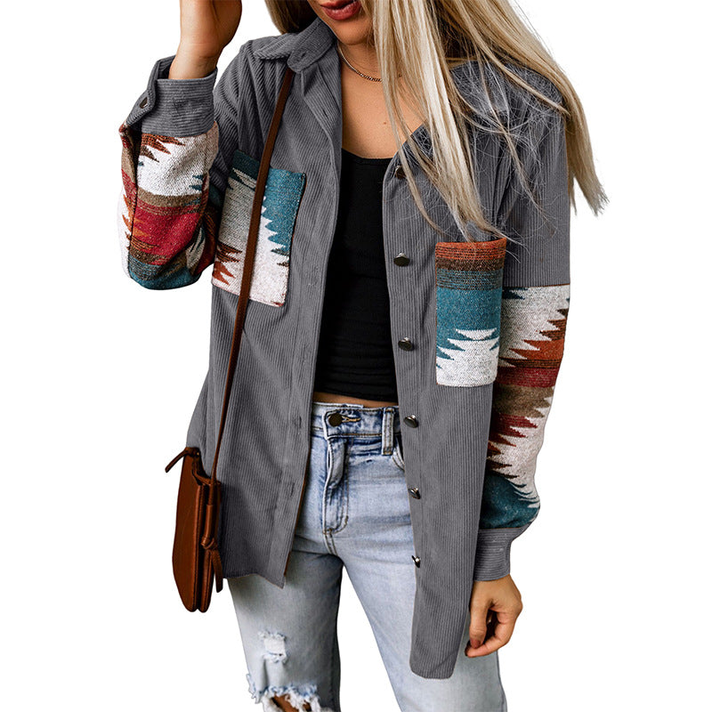Casual Corduroy Women's Aztec Button Jacket